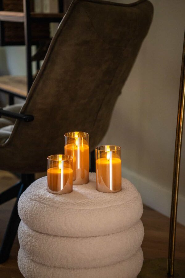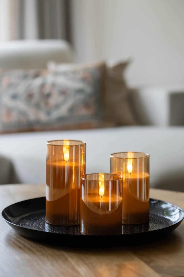 DORSETTO genopladelige LED-lys – brændetid 105 timer – sæt med 3 – med fjernbetjening