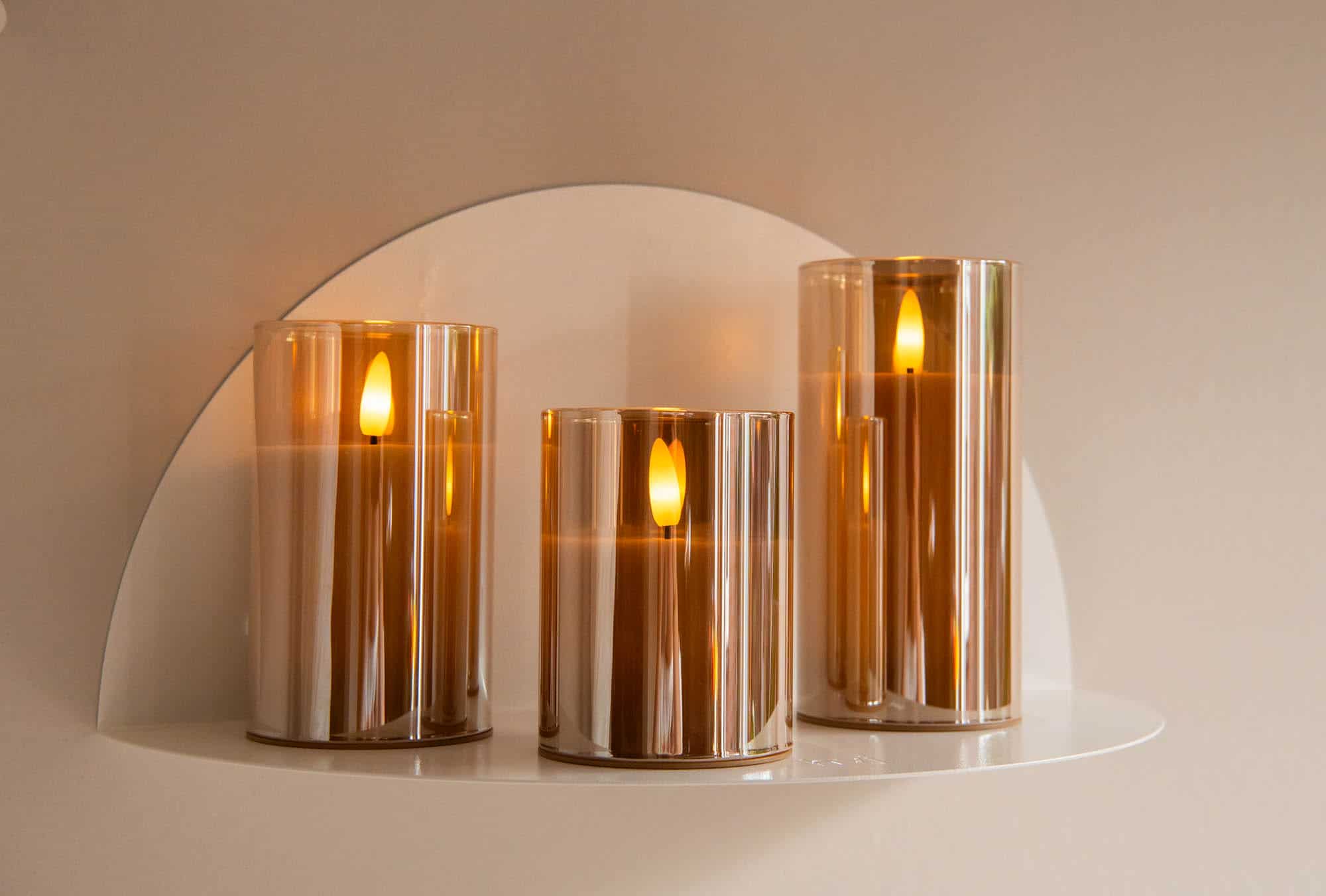DORSETTO genopladelige LED-lys – brændetid 105 timer – sæt med 3 – med fjernbetjening