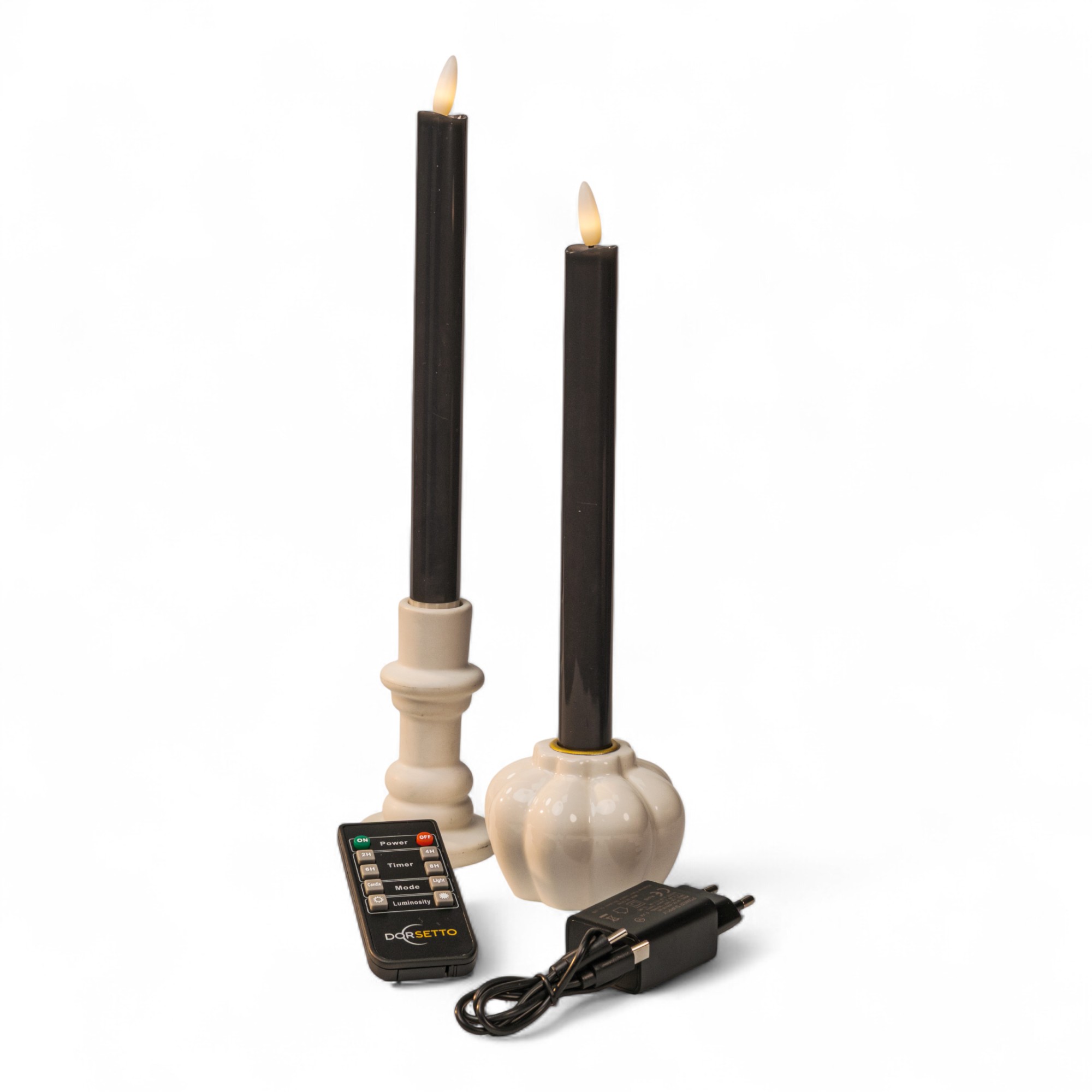 LED-dinerlys 400 timers brændetid, genopladelige, sort – sæt med 2